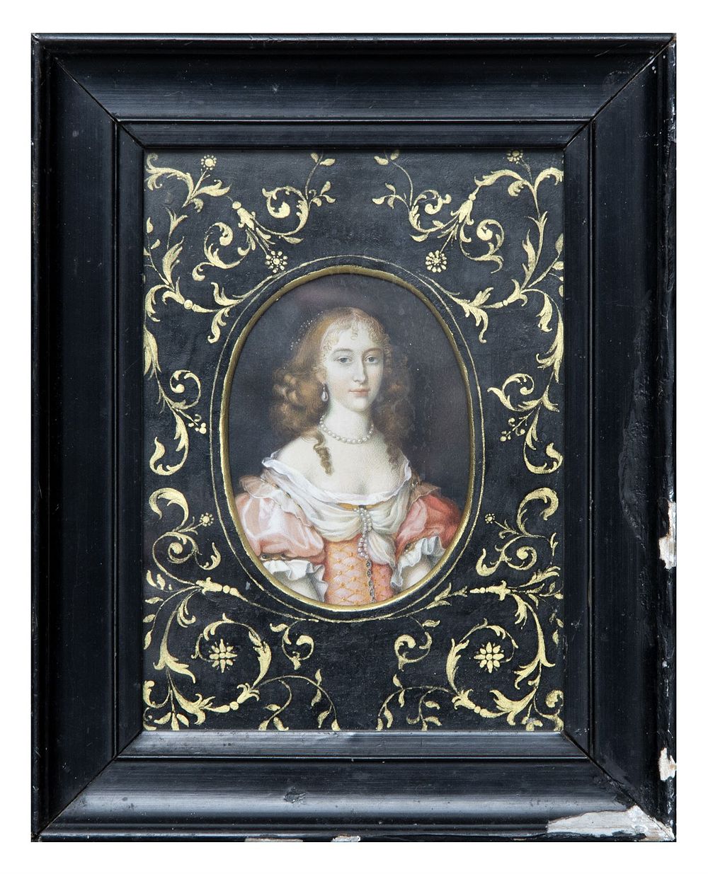Cornici a lacca nera con decori in oro di recente manifattura