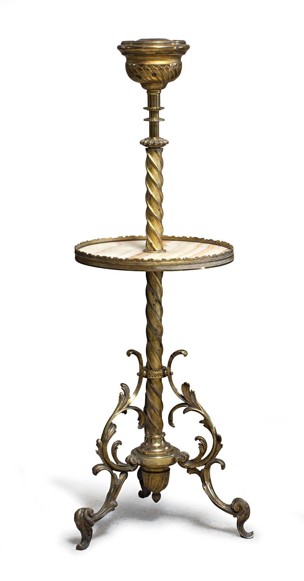 con fusto a balaustro e base a stemmi crociati. Adattato a lume.