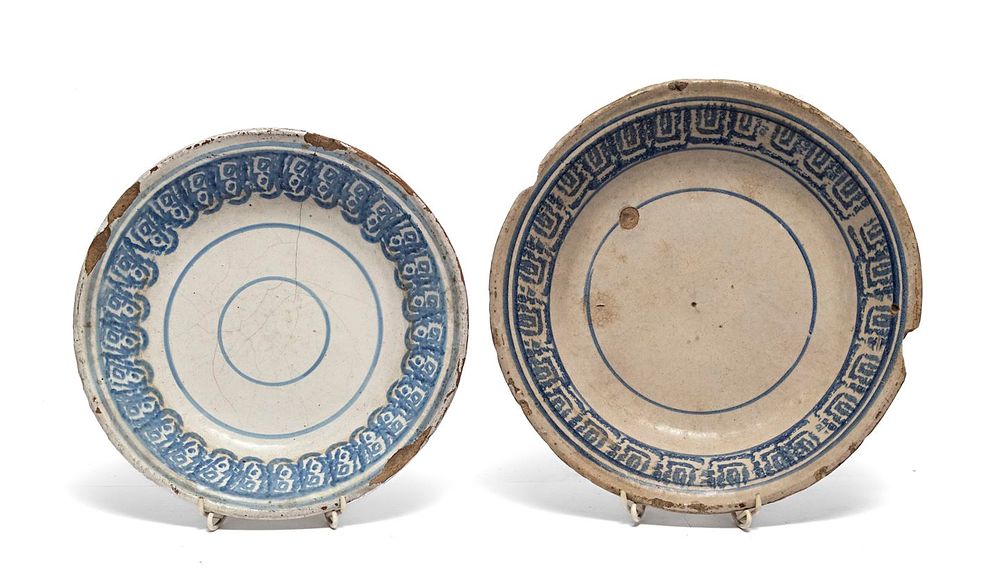 Due elementi in marmo, decorati con corone a rilievo.