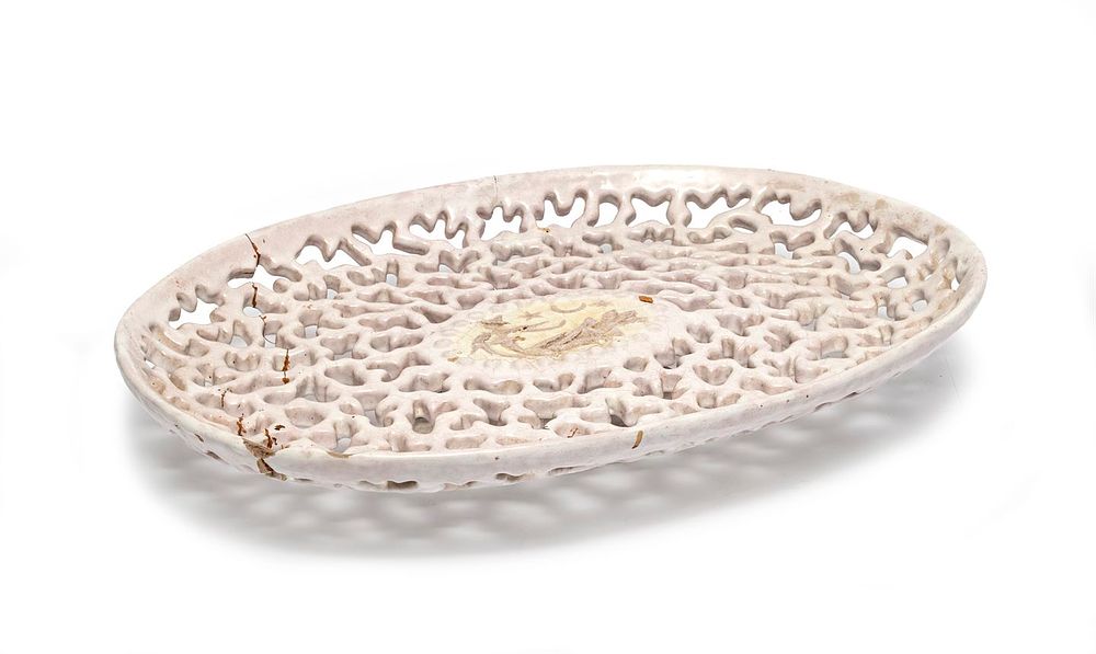 a smalto bianco e azzurro, con decoro a palmette al bordo.