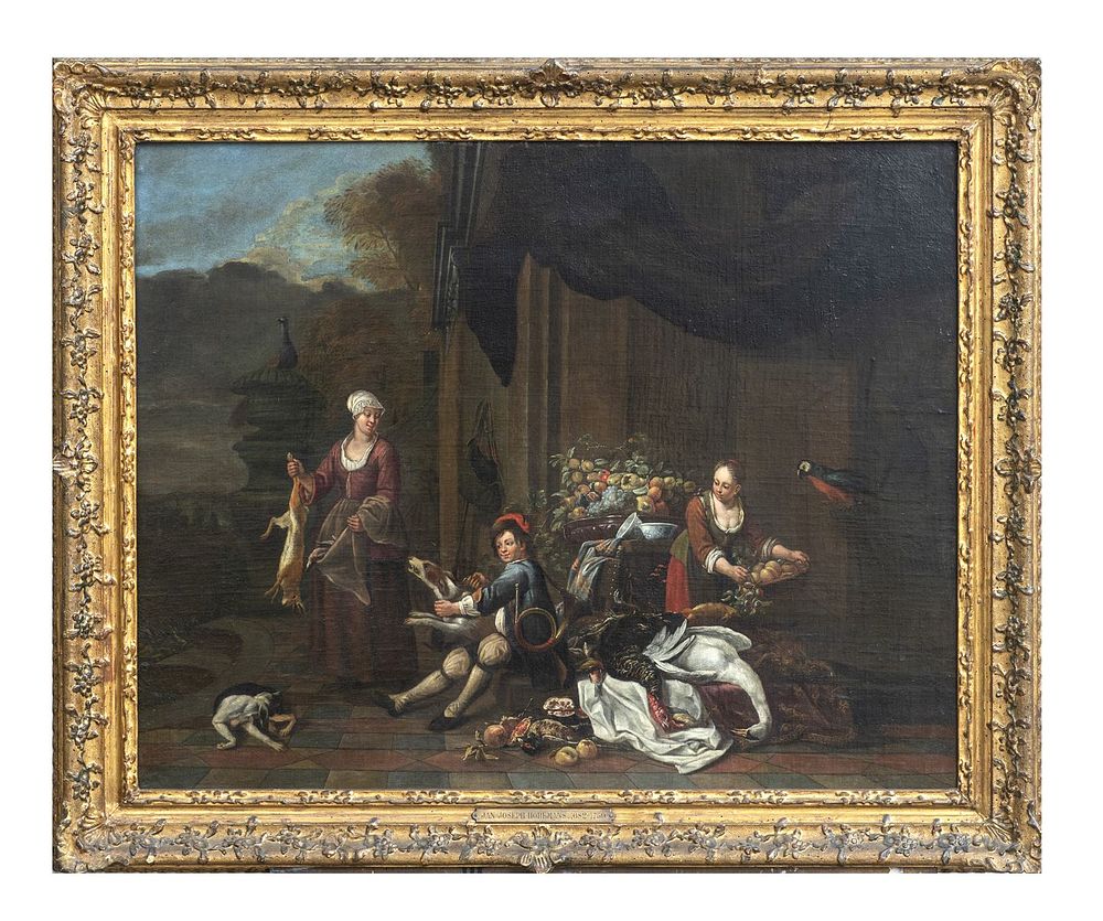 Il dipinto è stato tramandato in famiglia con una attribuzione a Jacopo Cestaro, pittore legato alla cultura del Solimena ma con uno sguardo rivolto anche verso la pittura genovese del XVIII secolo come rivelano i suoi affreschi i cui impianti godono di spazi di gran respiro.