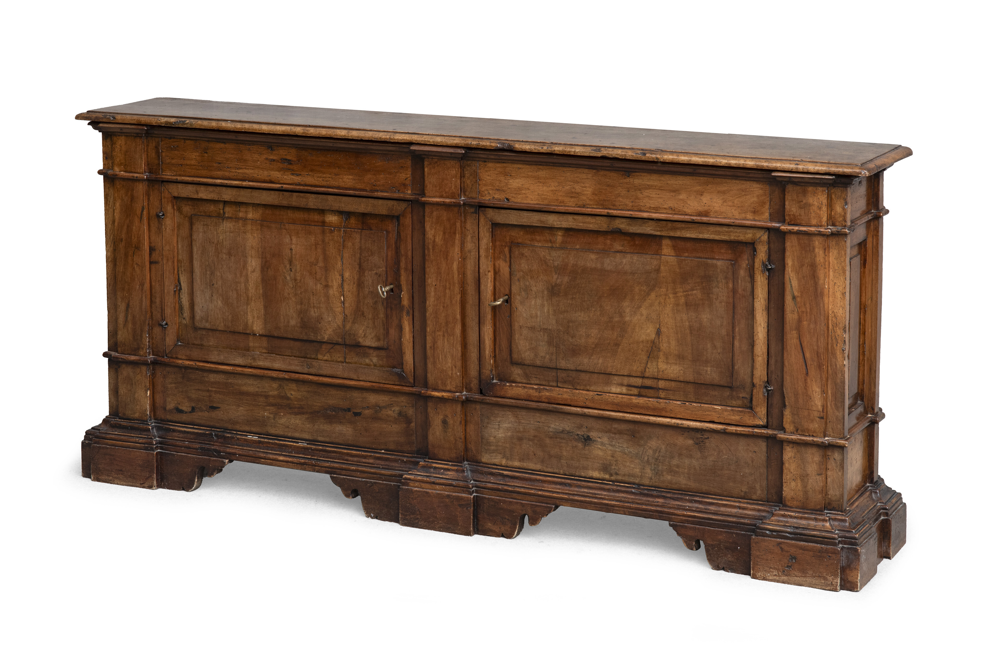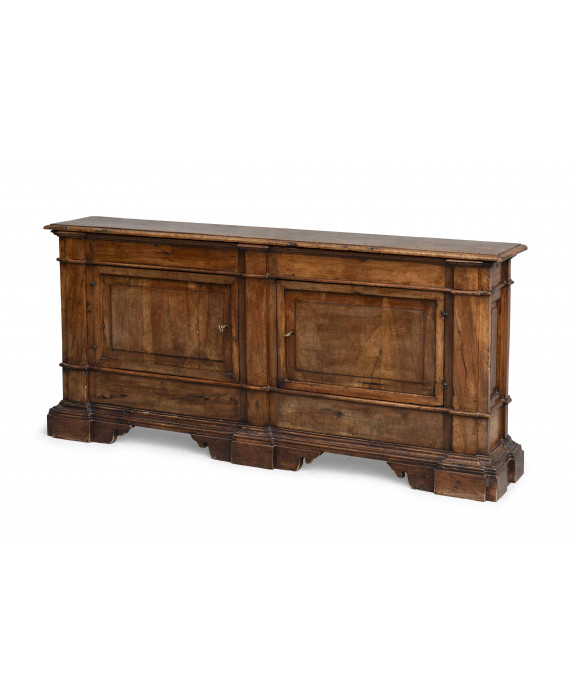 a due sportelli sul fronte con partiture a profili di colonne. Fascia di base modanata, piedi a mensola.