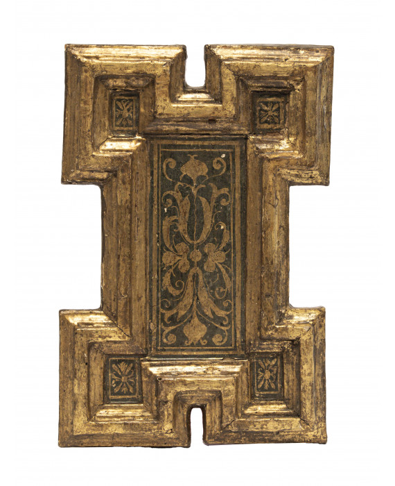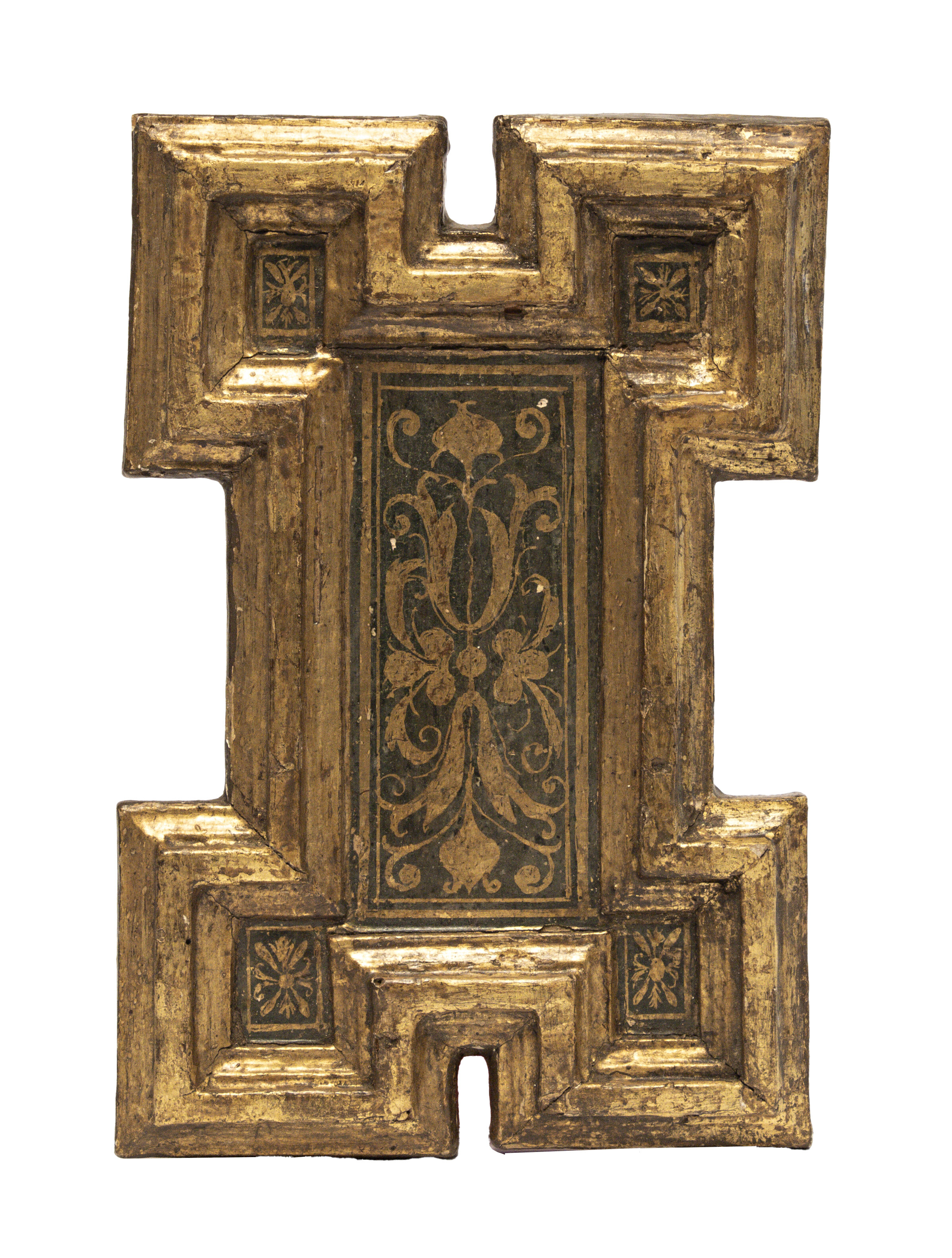 a lacca verde e oro, con decori fogliacei.