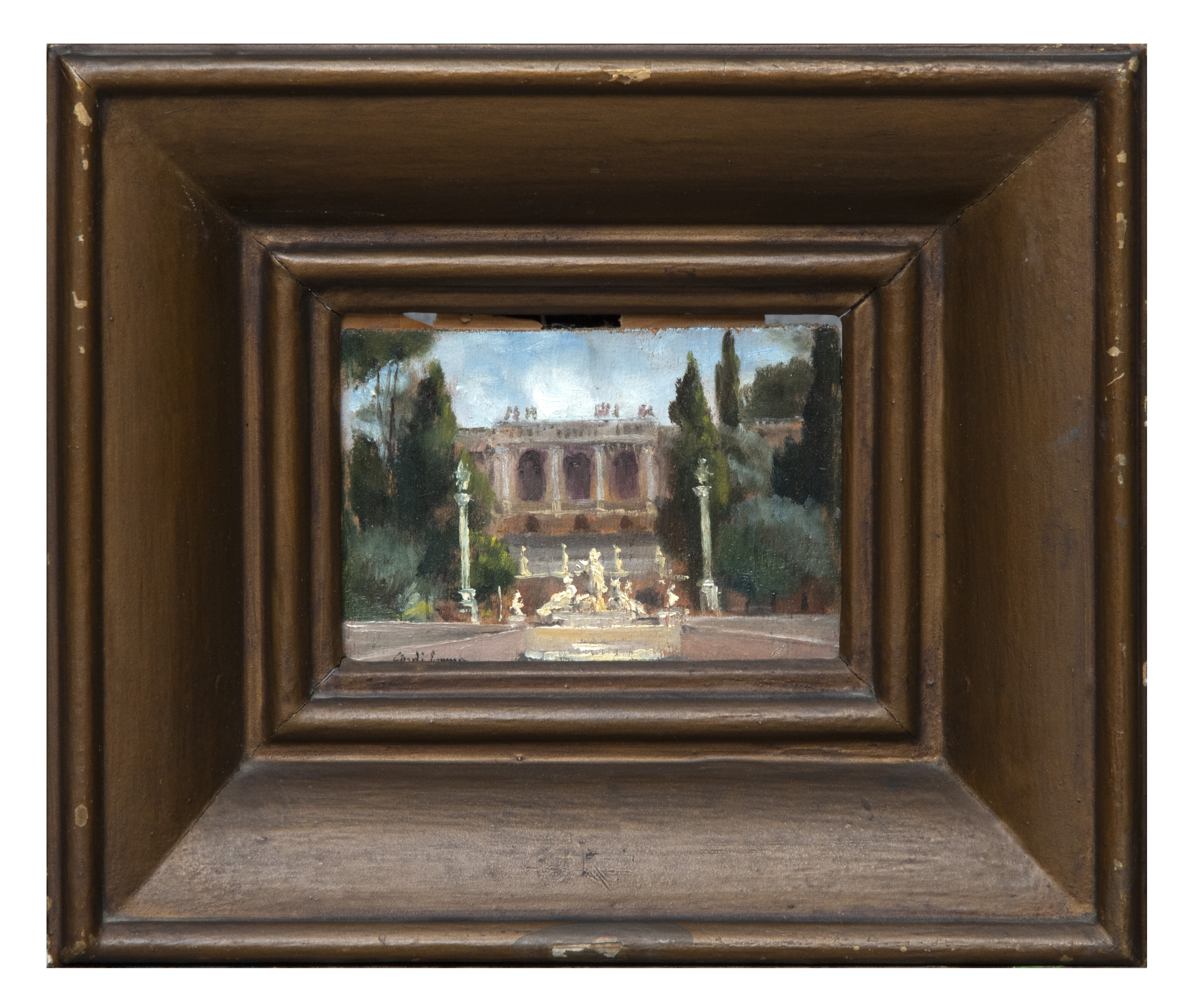 PITTORE INIZI XX SECOLO PIAZZA DEL POPOLO, ROMA Olio su tavoletta, cm. 10 x 14 Firmato 'Ciardi Emma', in basso a sinistra In cornice