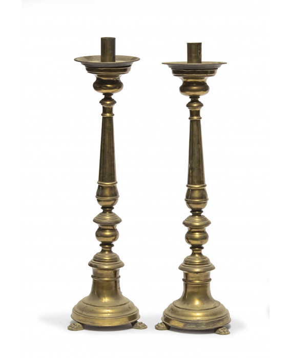 Coppia candelieri ottone XIX sec.