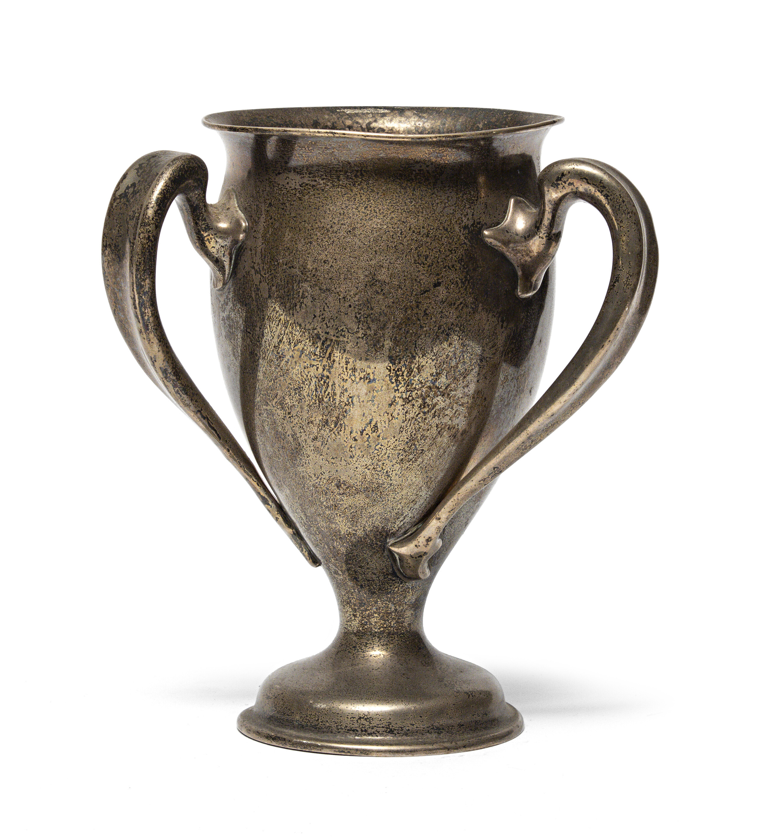 VASO IN ARGENTO, PUNZONE LONDRA INIZI XX SECOLO con tre braccia a nastro e piede circolare. Appesantito. Titolo 925/1000. Misure cm. 25 x 21, peso gr. 1084.