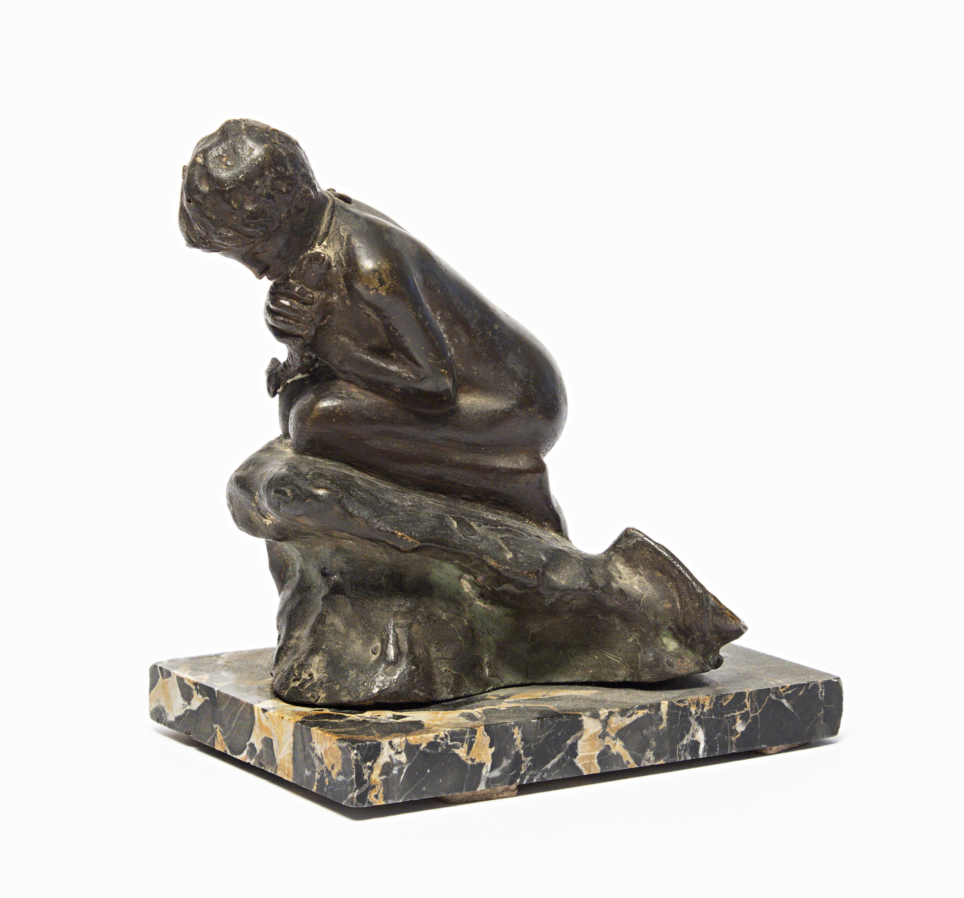 SCULTORE NAPOLETANO, XIX SECOLO PESCATORELLO Bronzo a patina nera, cm. 20 x 13 x 16 Firma 'Gemito', incisa al retro Base in marmo portoro