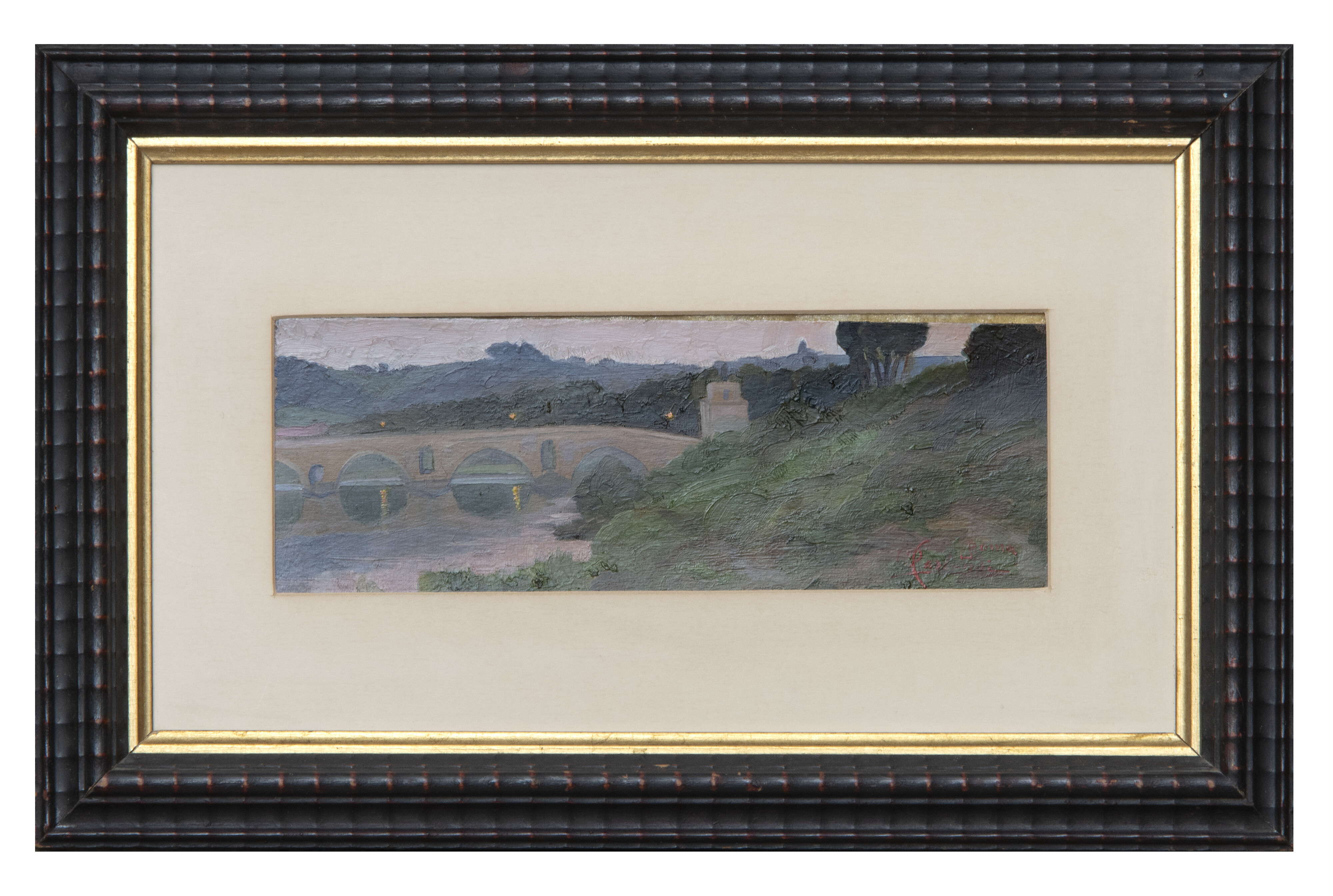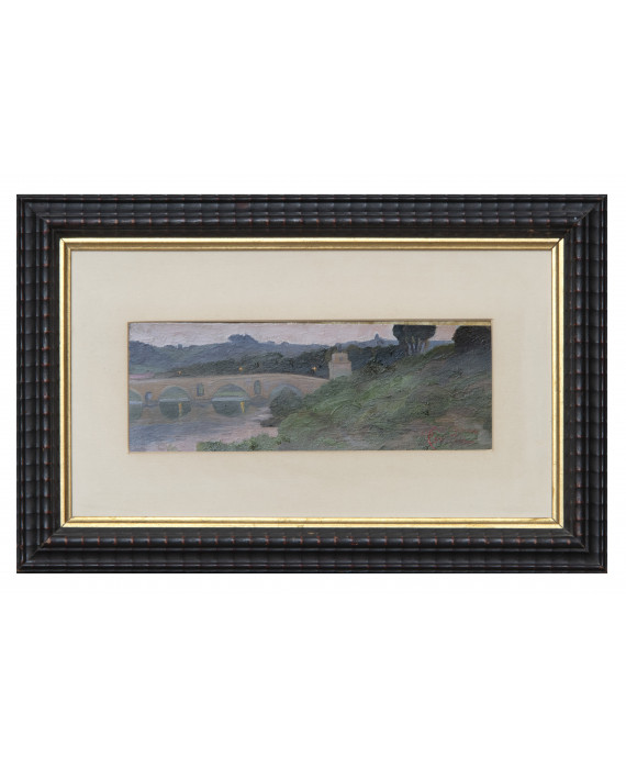 ONORATO CARLANDI (Roma 1848 - 1939) PONTE MILVIO Olio su cartone, cm. 9 x 25 Firmato in basso a destra