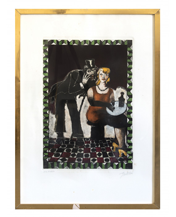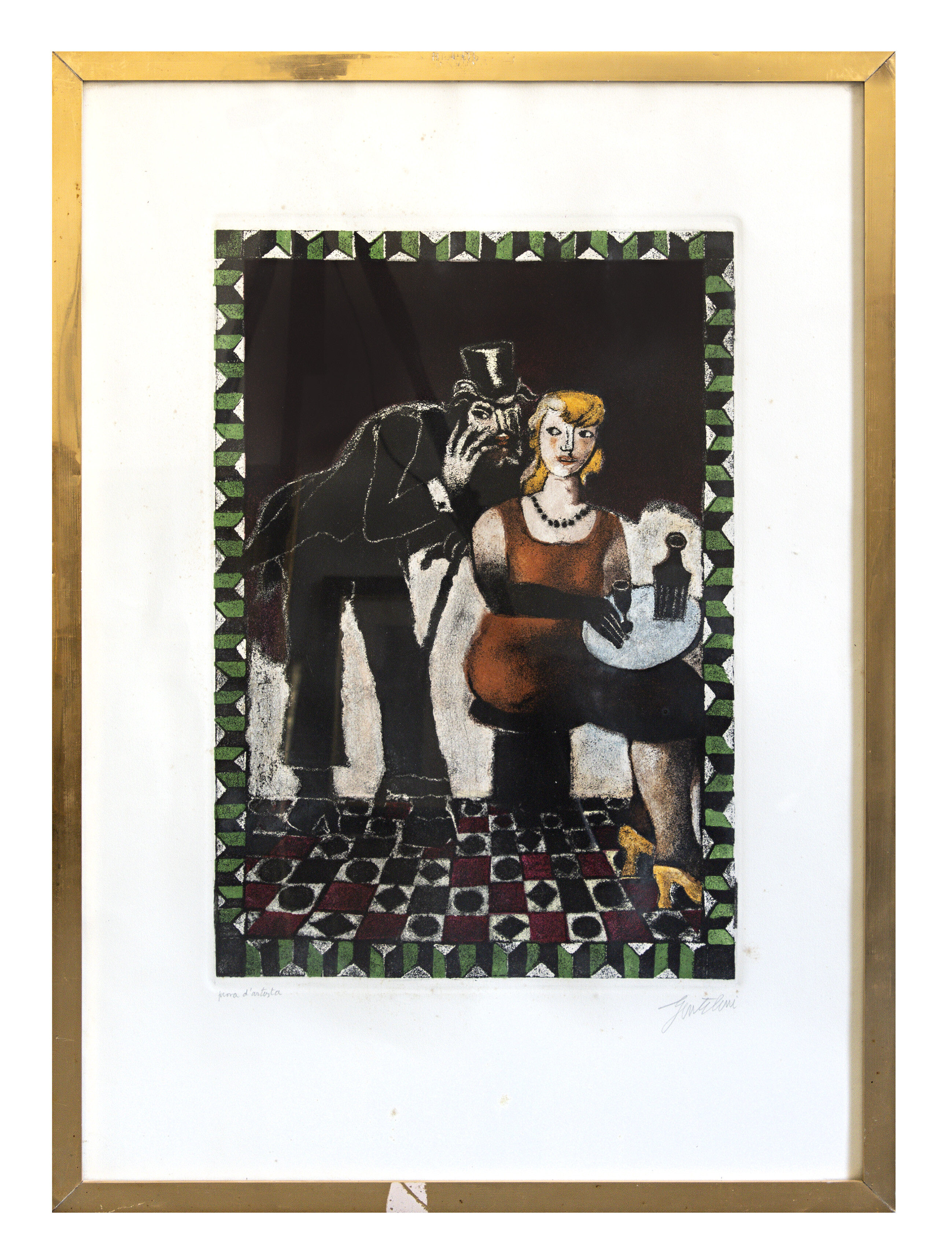 FRANCO GENTILINI (Faenza 1909 - Roma 1981) IL DIAVOLO Acquaforte e acquatinta , cm. 70 x 49 prova d'artista firmata In cornice