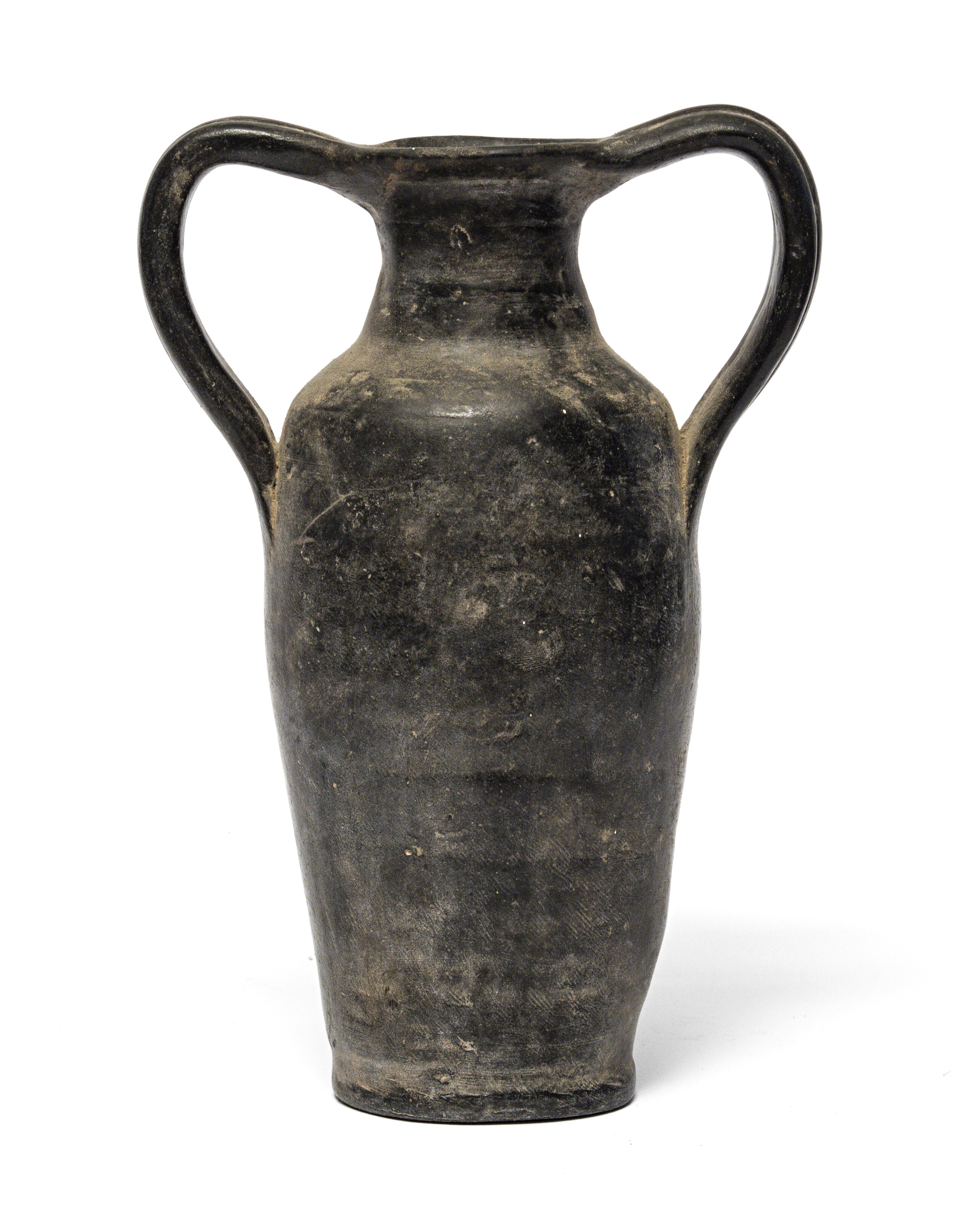 VASO IN BUCCHERO, STILE ARCHEOLOGICO XX SECOLO con anse a nastro. Misure cm. 27 x 18 x 12.