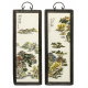COPPIA DI MATTONELLE IN PORCELLANA, CINA FINE XIX SECOLO a smalti policromi, con decoro a paesaggio tradizionale e ideogrammi. Cornice ebanizzata. Misure cm. 49 x 16.
